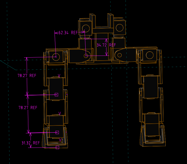 Hip Yaw(髖部水平旋轉)- link1 長度即馬達旋轉中心至馬達底部的長度 0.03472m