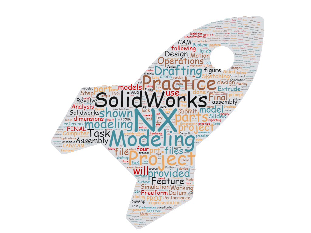 In the lab session, the commercial CAD/CAM packages including NX12 and SolidWorks will be used to provide students with hands-on CAD/CAM experiences through exercises on features creation, sketching, drafting, solid modeling, freeform modeling, assembly modeling, and finite element analysis.
